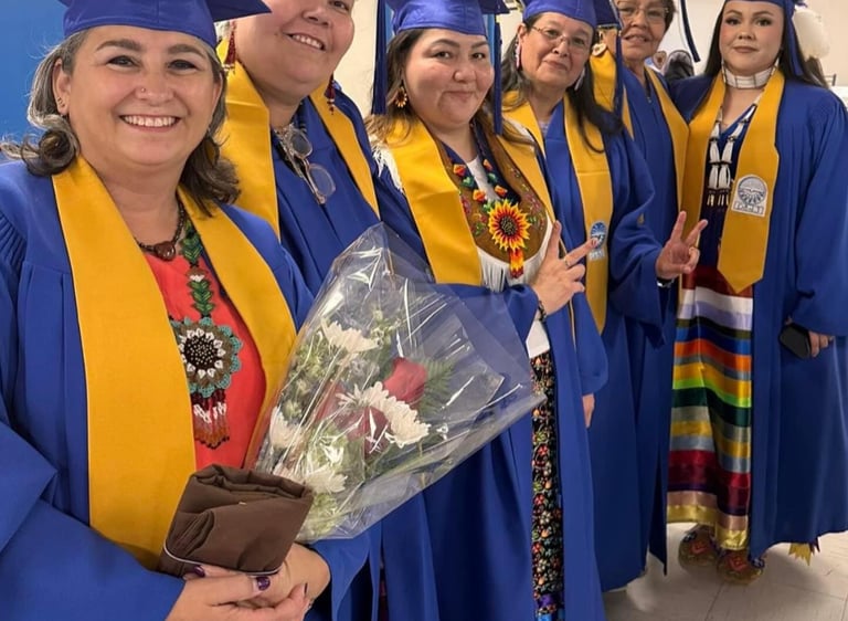 The Bachelor of Arts in Dene was launched in the Fall of 2017, due to a need for a program that would help to begin healing, reclaim ceremony and the Denesųłı̨né language for the Cold Lake First Nations Dene. The BA in Dene is a 3-year program. In this program, students learn in classroom settings, out on the land with land-based specific teachings, online with virtual technology and in a hybrid that includes both in-person and online segments.