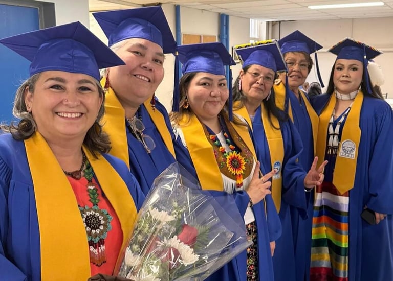 The Bachelor of Arts in Dene was launched in the Fall of 2017, due to a need for a program that would help to begin healing, reclaim ceremony and the Denesųłı̨né language for the Cold Lake First Nations Dene. The BA in Dene is a 3-year program. In this program, students learn in classroom settings, out on the land with land-based specific teachings, online with virtual technology and in a hybrid that includes both in-person and online segments.
